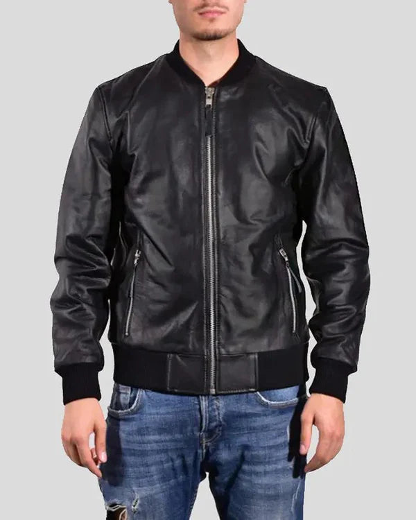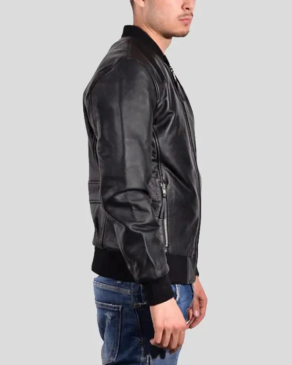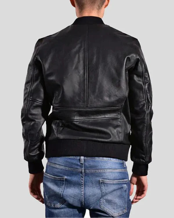 Men's Genuine Lambskin Bomber Leather Jacket RXMJ0015