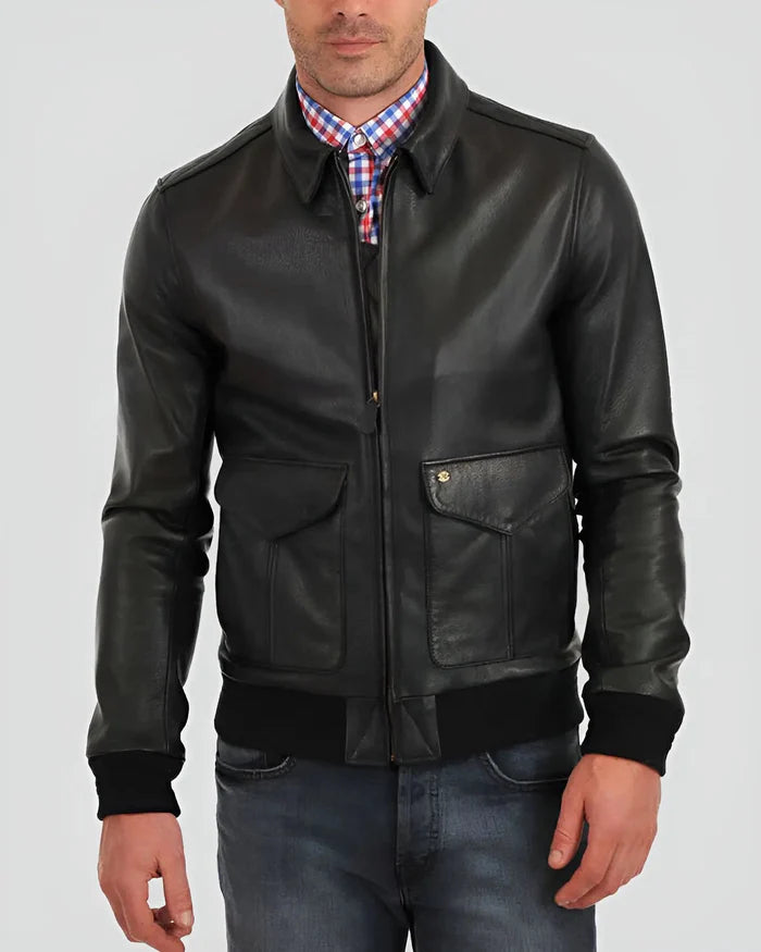 Men's Genuine Lambskin Bomber Leather Jacket RXMB0010