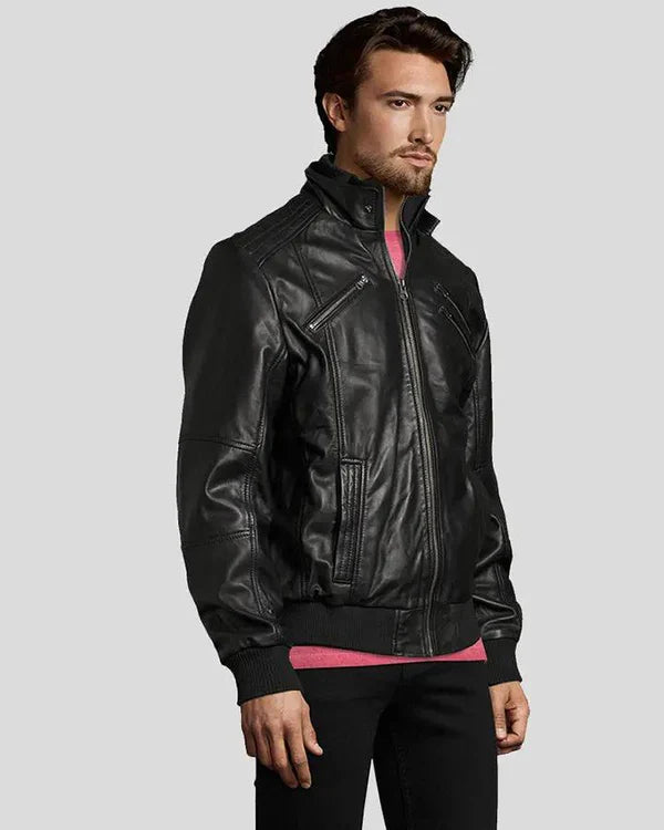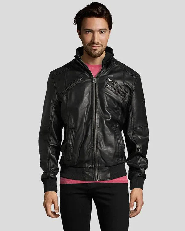 Men's Genuine Lambskin Bomber Leather Jacket RXMB0011