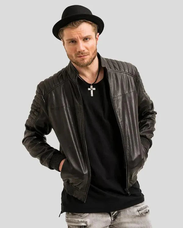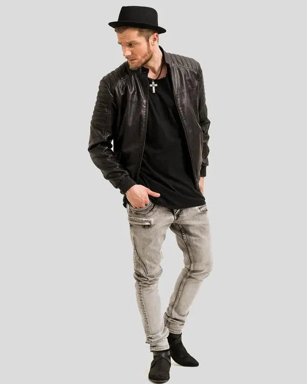 Men's Genuine Lambskin Bomber Leather Jacket RXMB0012