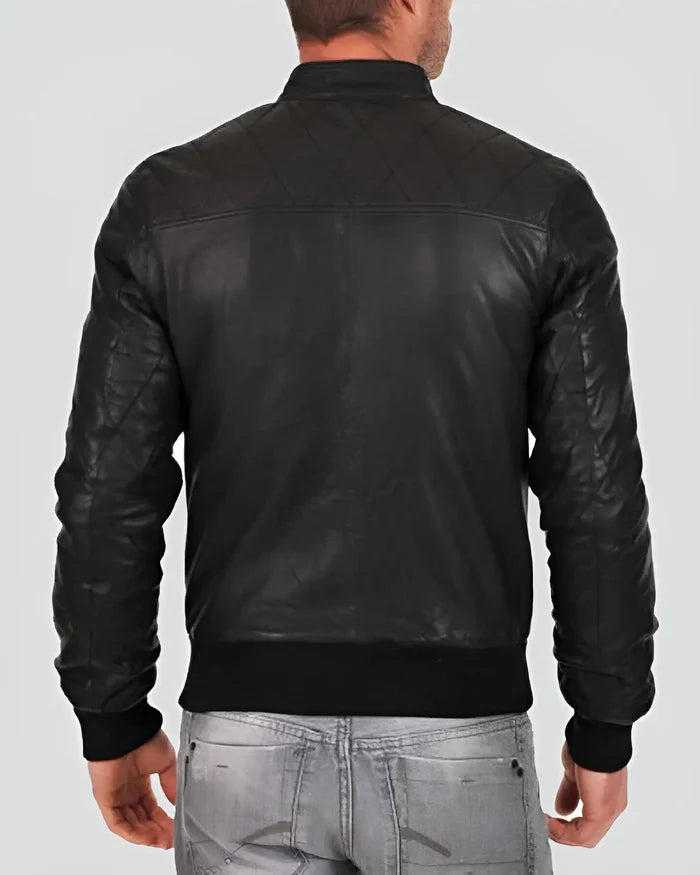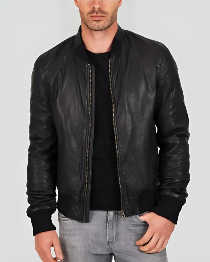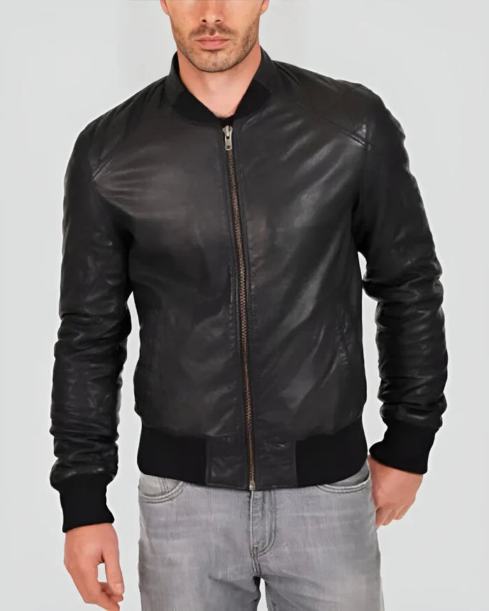 Men's Genuine Lambskin Bomber Leather Jacket RXMB008