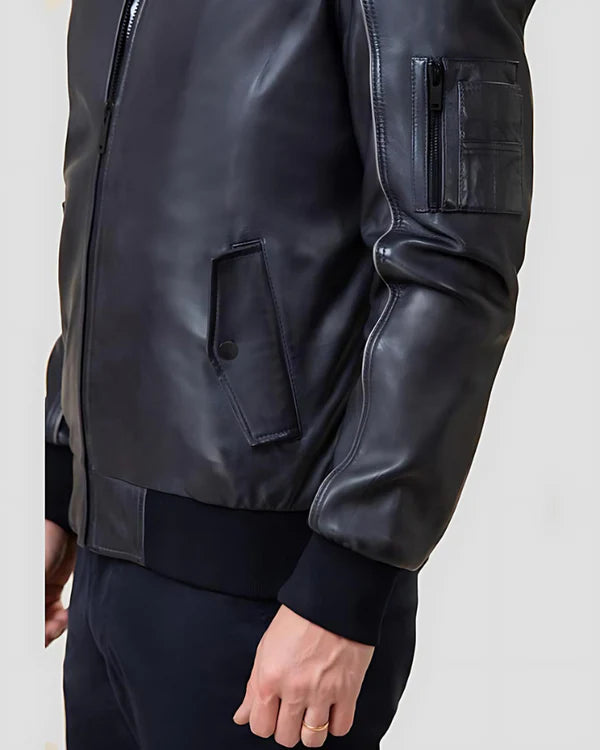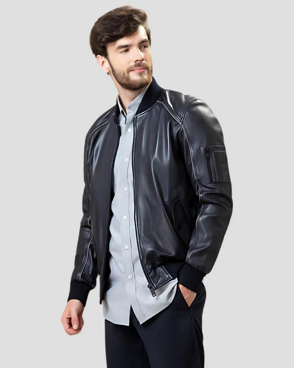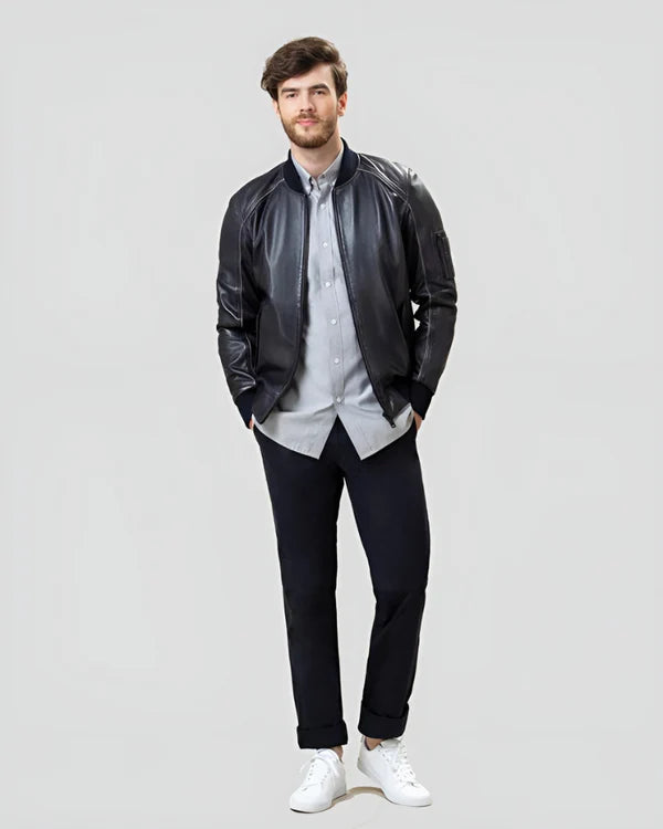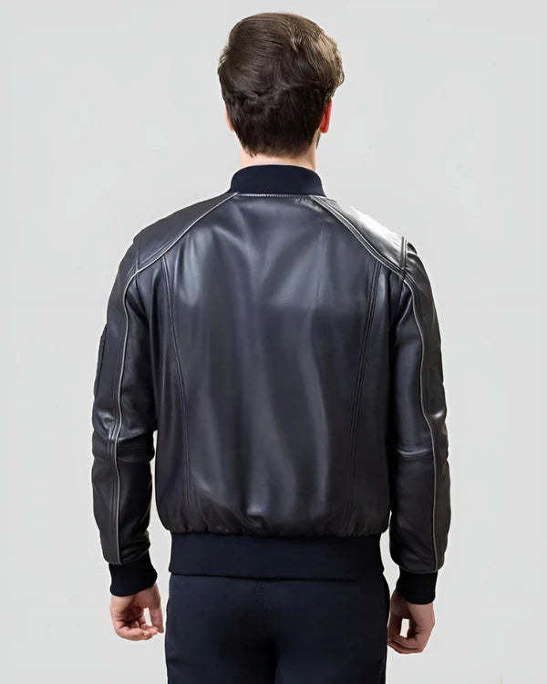 Men's Genuine Lambskin Bomber Leather Jacket RXMB009