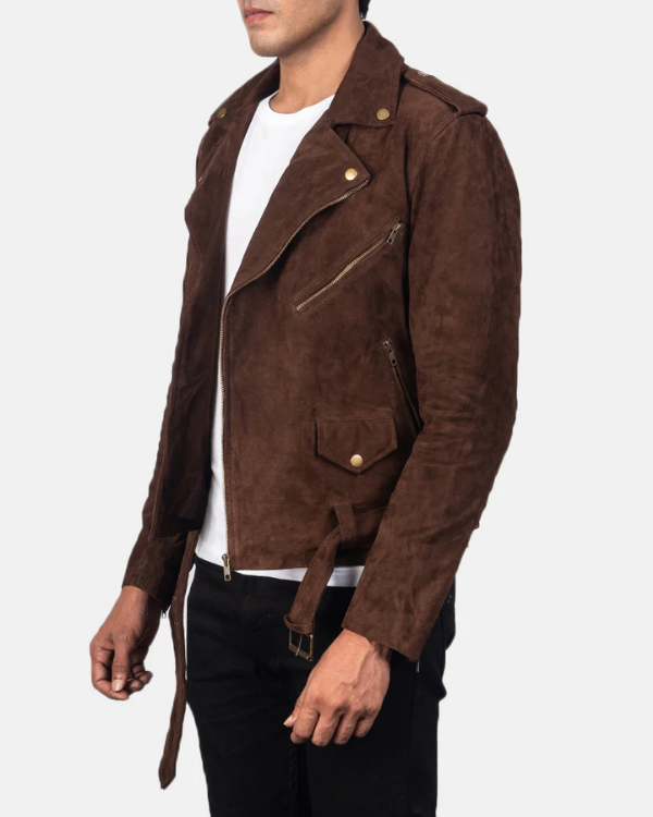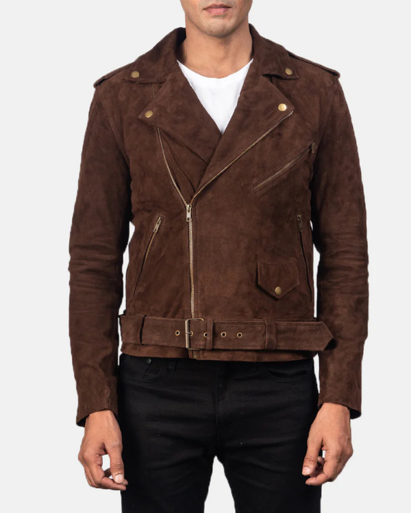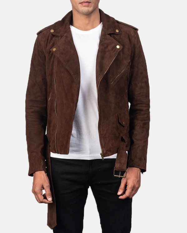 Men's Genuine Lambskin Suede Biker Leather Jacket RXMJ0062