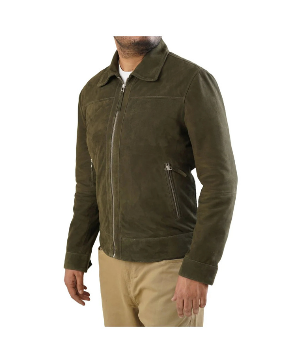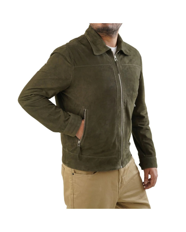 Men's Genuine Lambskin Leather Suede Bomber Jacket RXMJ0060