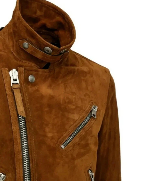 Men's Genuine Lambskin Suede Biker Leather Jacket RXMJ0024