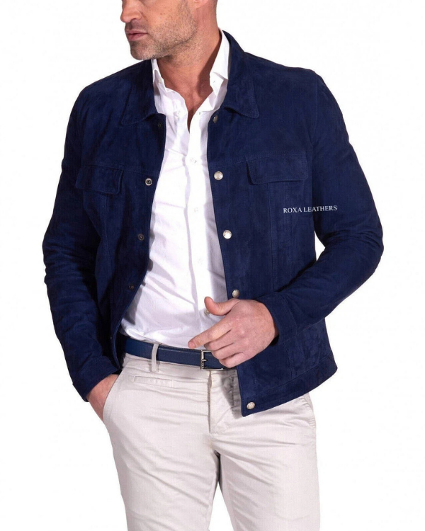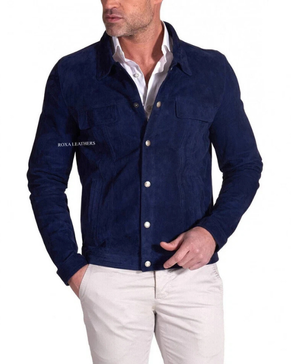 Men's Genuine Lambskin Suede Denim Leather Jacket RXMJ0031