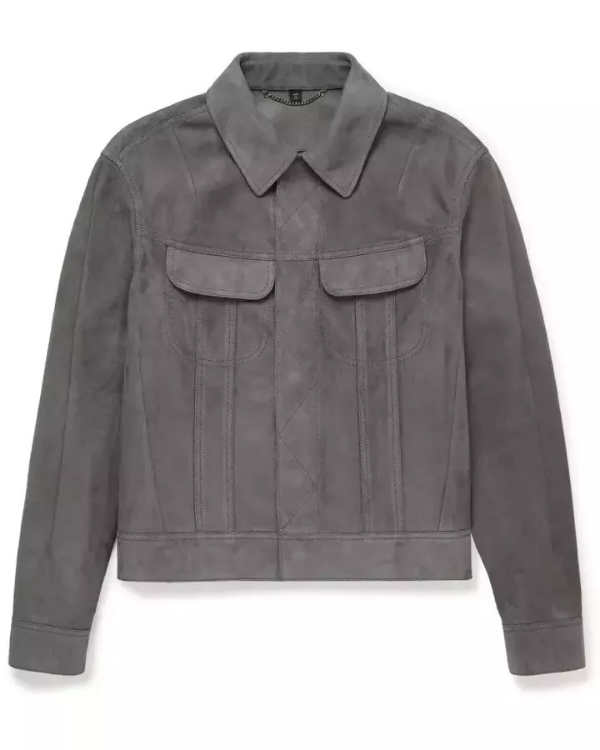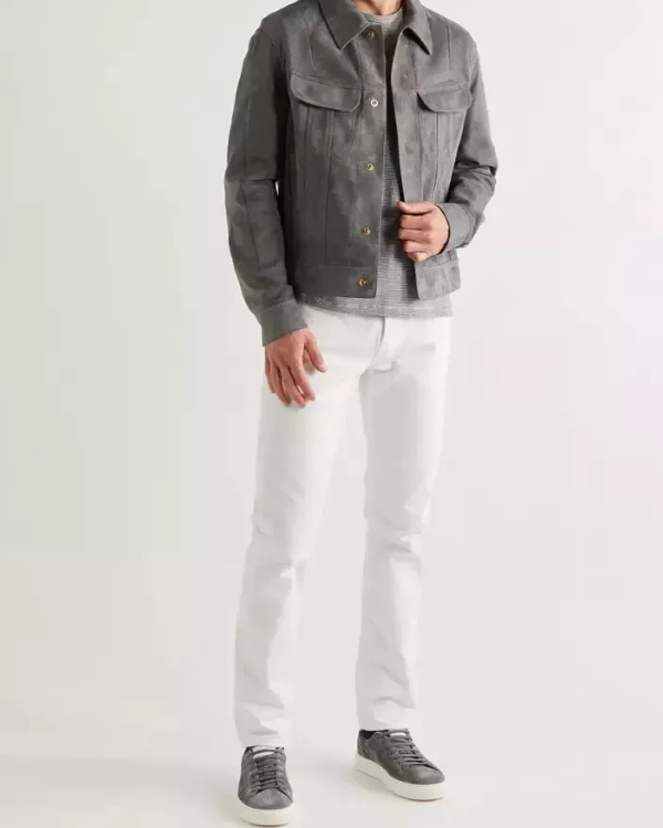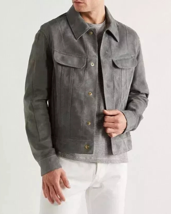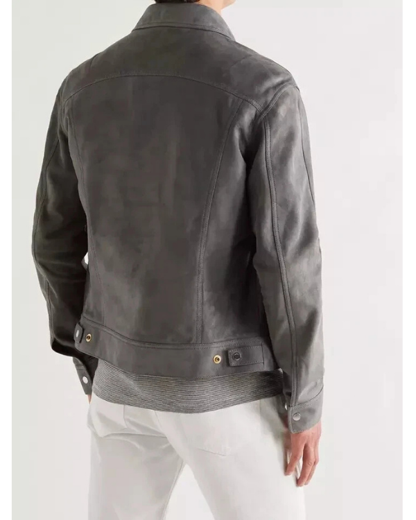 Men's Genuine Lambskin Suede Trucker Denim Jean Leather Jacket RXMJ0021