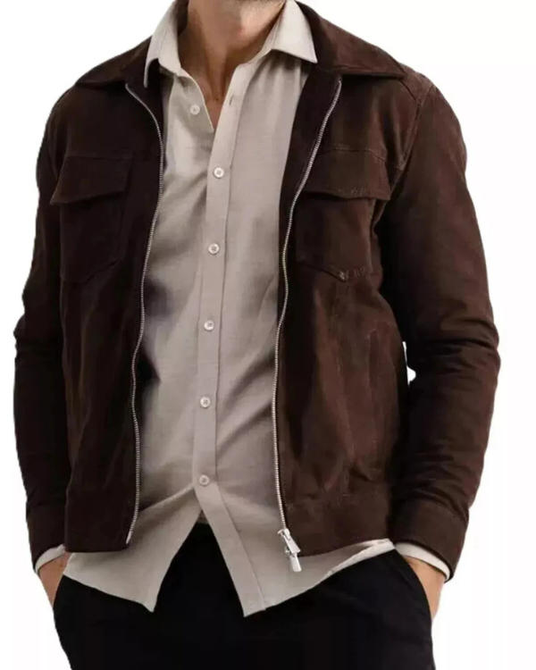 Men's Genuine Lambskin Suede Bomber Leather Jacket RXMJ0021